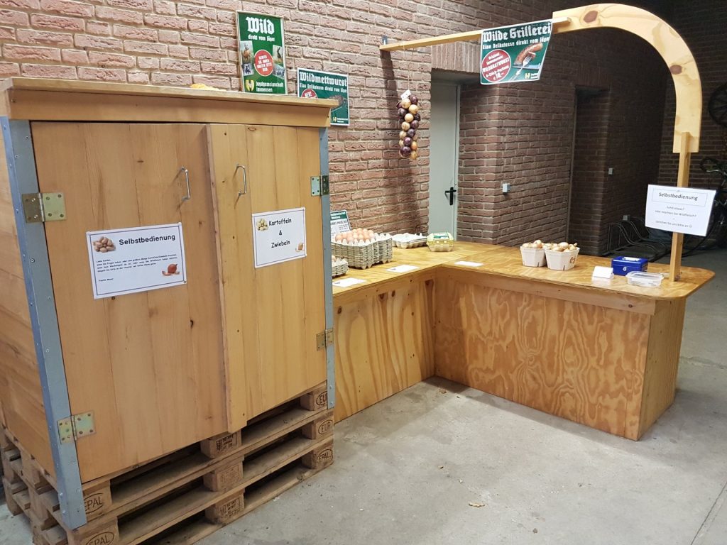 Das ganze Jahr über verkaufen wir Kartoffeln und Eier (Größe L und M).